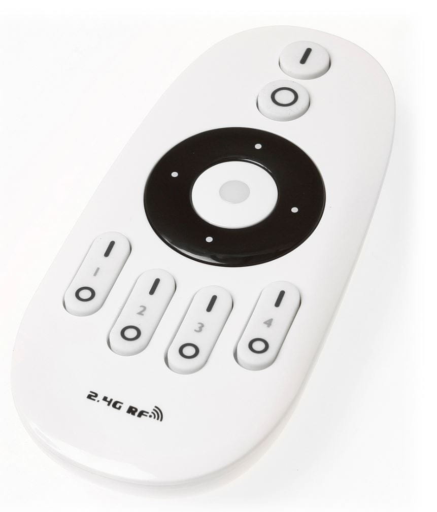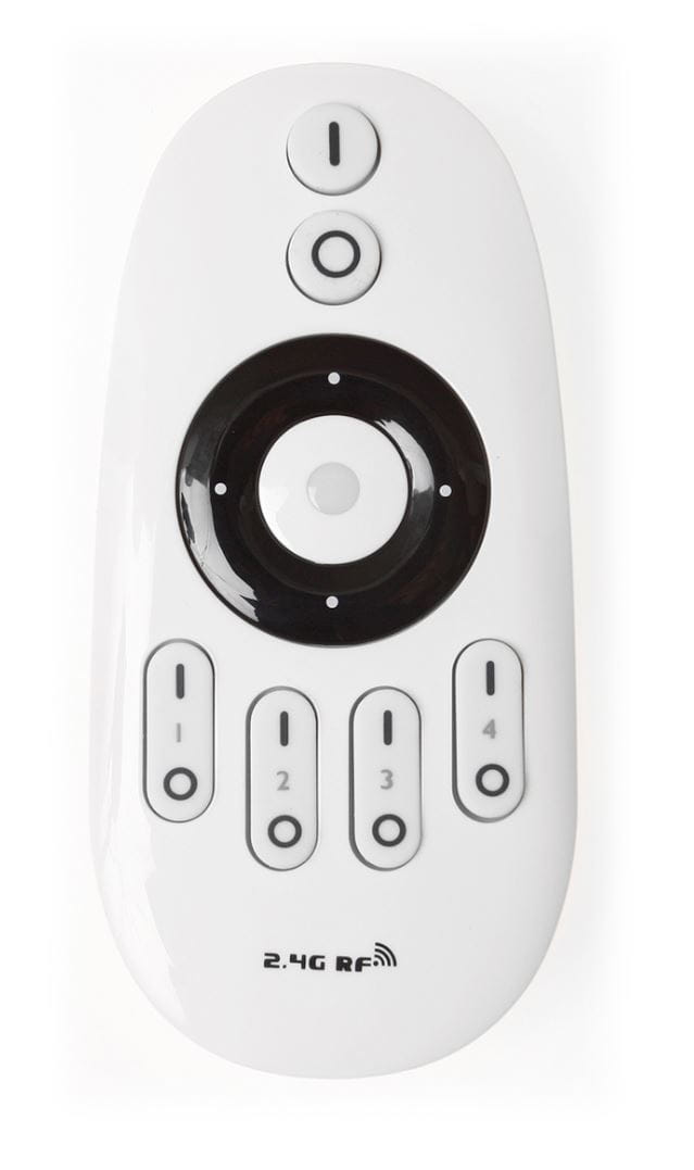 Pilot Mono/CCT FUT007 to inteligentny kontroler, który umożliwi Ci nie tylko sterowanie jednokolorowym oświetleniem LED i źródłami światła o zmiennej temperaturze CCT, ale również na ich podział aż na 4 indywidualnie sterowanie strefy. Na pilocie znajdziesz 4 przyciski wyboru stref, za pomocą których będziesz mógł włączyć lub wyłączyć daną sekcję, a także zmienić temperaturę barwową przy pomocy lub rozjaśnić jej światło za pomocą 4 przycisków na ringu.