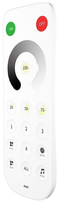 Bezprzewodowy pilot dotykowy RB1 w eleganckim, białym kolorze to wygodne i niezawodne narzędzie do sterowania oświetleniem cyfrowym LED poprzez odbiorniki SP636e. Umożliwia on kontrolę aż czterech niezależnych stref, oferując pełną elastyczność i komfort użytkowania w różnych przestrzeniach.