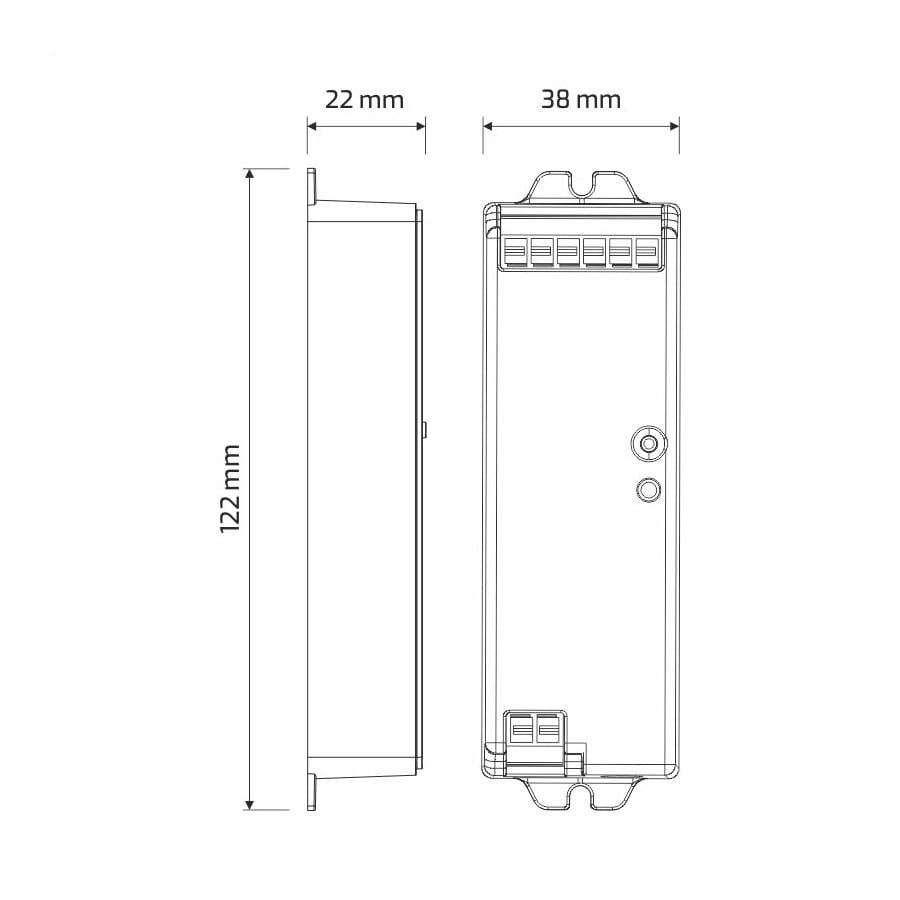 Wymiary: (mm)122 mm x 38 mm x 22 mm