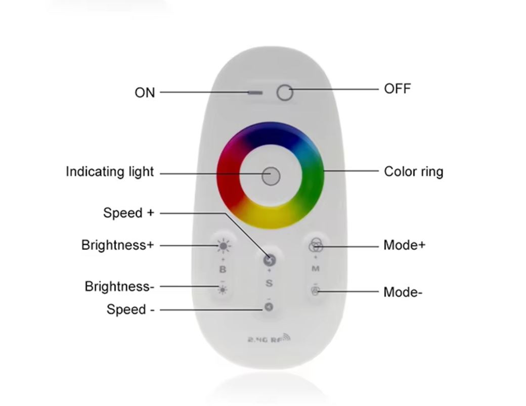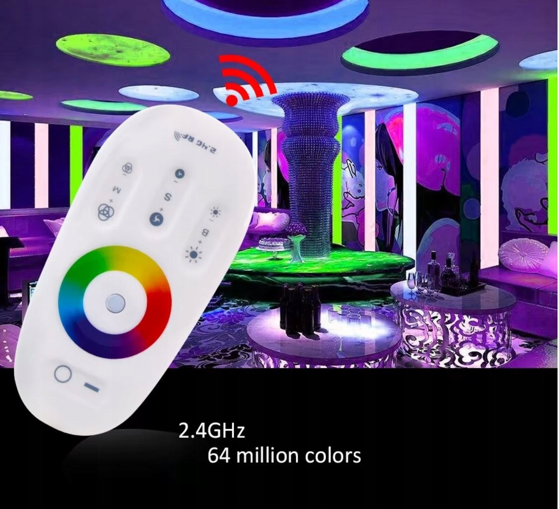 Sterownik RGB RF 2.4G to kompletny zestaw składający się z odbiornika oraz pilota, dedykowany do sterowania taśmami LED RGB (wielokolorowymi). Urządzenie przeznaczone do kontrolowania barwy, jasności oraz załączania trójkanałowych taśm LED RGB zasilanych napięciem 12-24V DC. Dzięki dołączonemu pilotowi radiowemu działającemu w paśmie 2.4 GHz o zasięgu do 30 metrów., sterowanie oświetleniem jest intuicyjne, wygodne i precyzyjne.