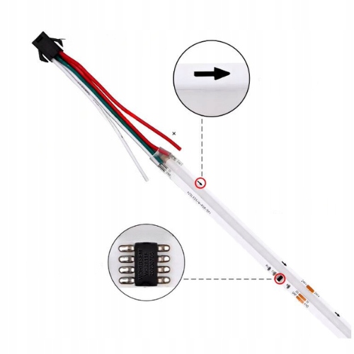 TAŚMA LED COB 24V CYFROWA ADRESOWALNA biała MONO 6500k (zimna) – Z EFEKTEM „PŁYNIĄCYM” - Taśma z dwóch stron zakończona wtyczkami.