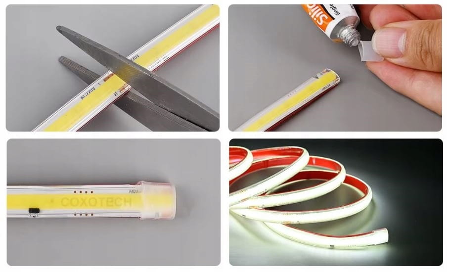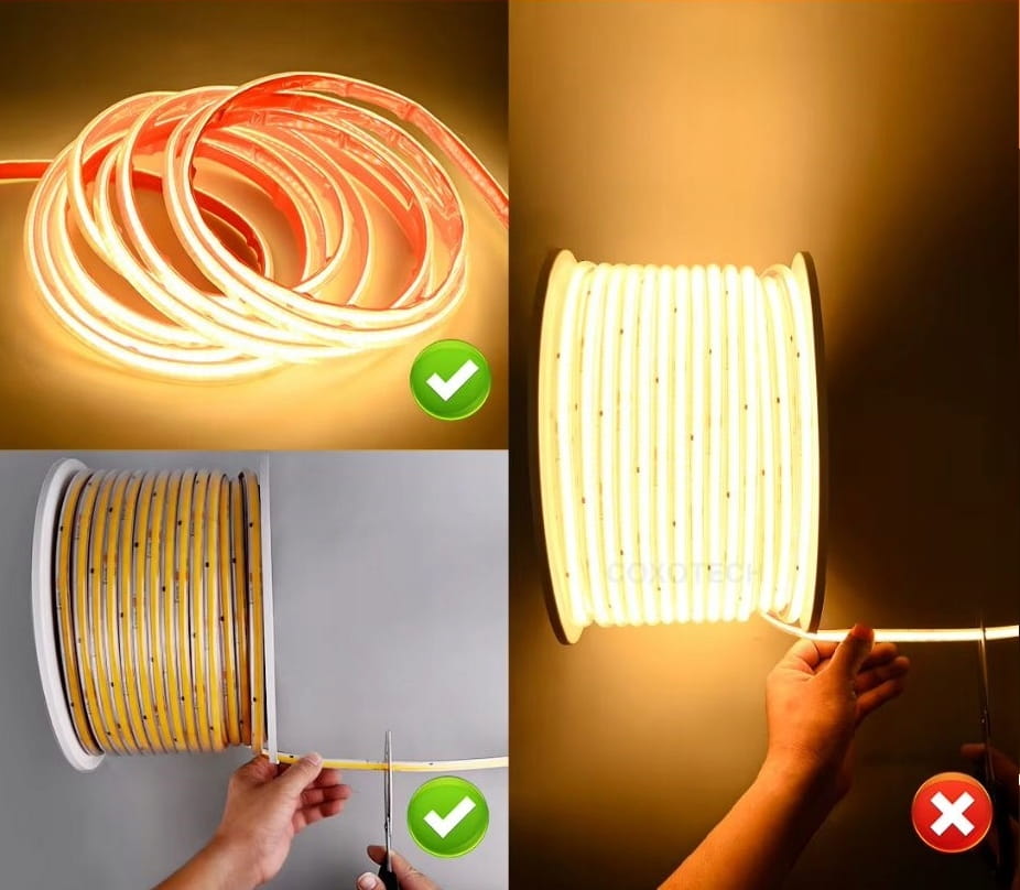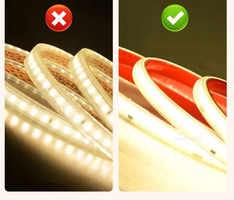 ✅ Jednolite światło bez kropek: Dzięki technologii COB, taśma emituje równomierne, jednolite światło na całej długości, eliminując efekt kropek.