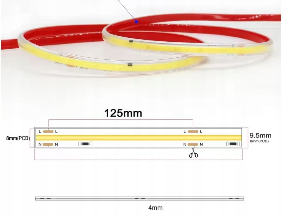 ✅ Łatwość instalacji: Taśma zasilana bezpośrednio z sieci 230V nie wymaga stosowania dodatkowych zasilaczy. Możliwość cięcia co 125 mm pozwala na precyzyjne dopasowanie do projektu.