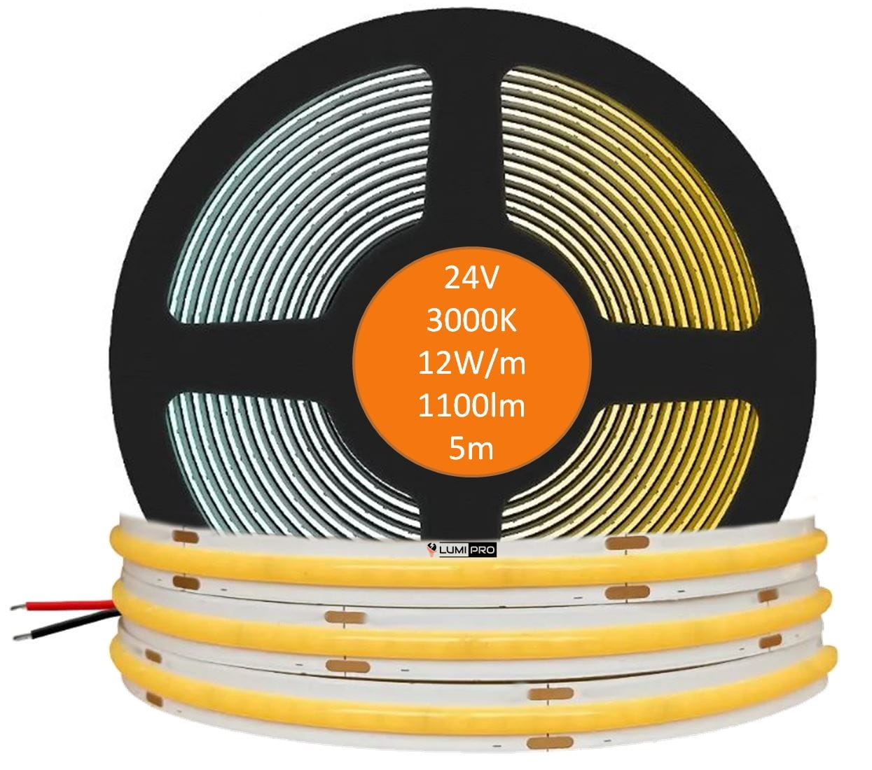 Taśma LED COB 10W/m 1100lm/m 24V Neon biały ciepły 3000k 480 diod PREMIUM rolka 5 metrów