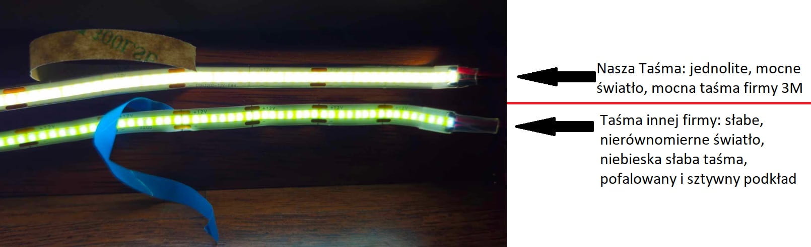 Kupując nasze taśmy LED COB PREMIUM, inwestujesz w trwałość i jakość. Dzięki podwyższonej żywotności i jasności diod EPISTAR, możesz zapomnieć o częstych wymianach, jakie są typowe dla tanich chińskich odpowiedników. Kupujesz raz i cieszysz się niezawodnym oświetleniem przez długi czas.