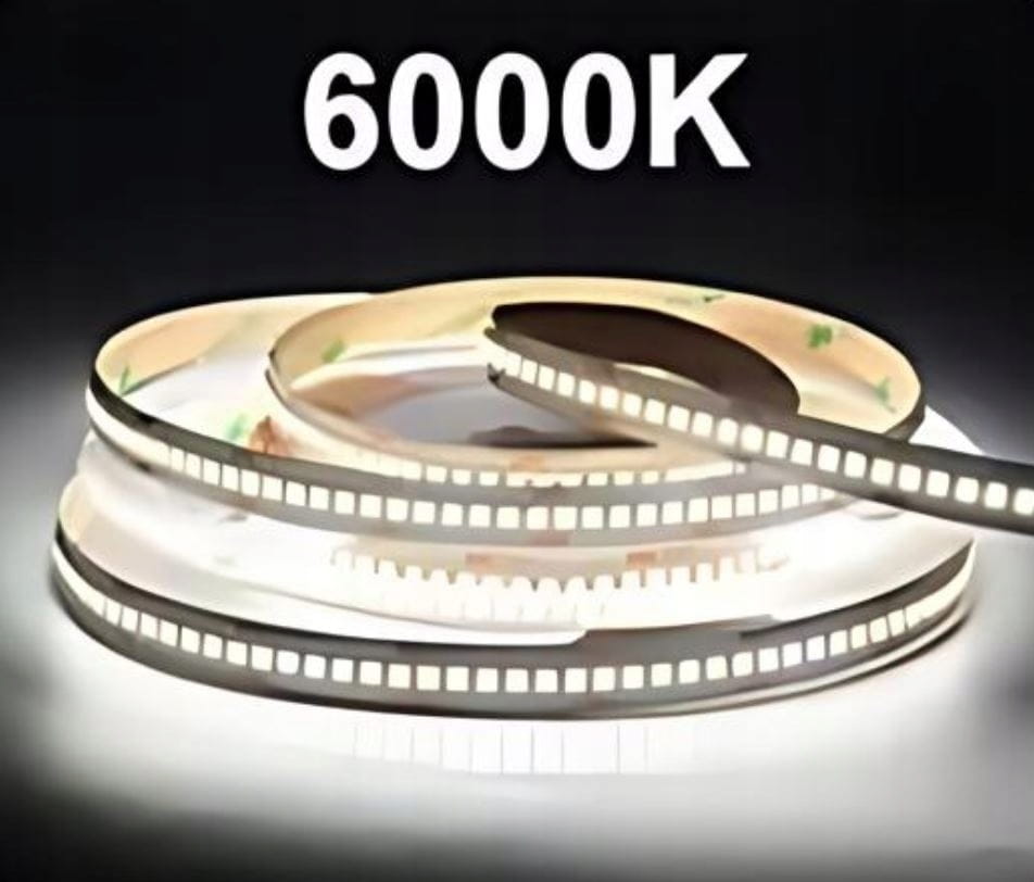 Taśma LED SMD 2835 12V barwa biała zimna 6500k 5m Jakość PREMIUM MEGA MOCNA o podwyższonej jakości z taśmą dwustronną firmy 3M