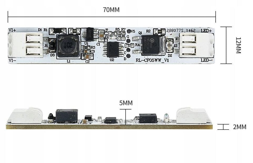 - Kompaktowe wymiaryNiewielki rozmiar (70 mm x 7 mm x 12 mm) pozwala na dyskretny montaż w profilach LED, zapewniając estetyczny wygląd instalacji.
