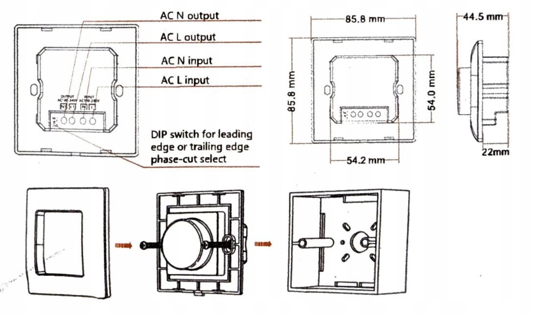 Włącznik/Ściemniacz LED ścienny podtynkowy TRIAC 300W do taśm LED 230V