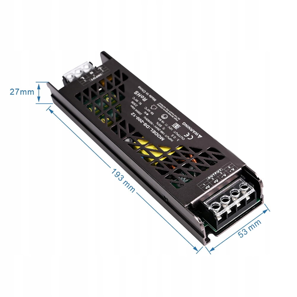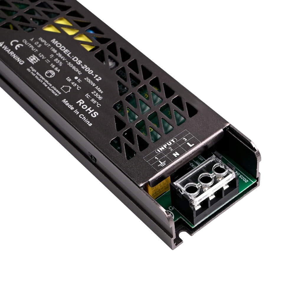 Zasilacz 12V 200W Slim 16,7A IP20 DO TAŚMY LED - PREMIUM