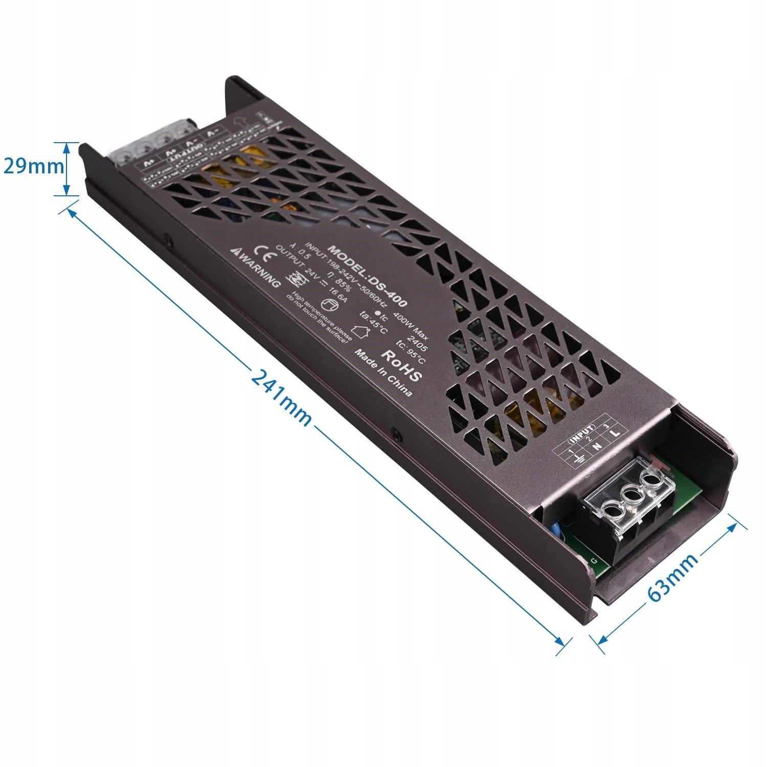 Zasilacz wewnętrzny SLIM o mocy 400W w obudowie metalowej o zminiaturyzowanej konstrukcji. Wielofunkcyjne przeznaczenie np. do zasilania taśm LED, paneli, listew, żarówek LED oraz wielu innych urządzeń elektronicznych zasilanych napięciem stałym 12V DC. Zasilacz posiada stopień ochrony IP20