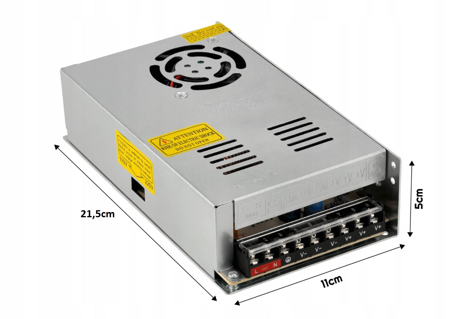 Zasilacz LED impulsowy przemysłowy LED 12V 360W 30A IP20 Modułowy CCTV