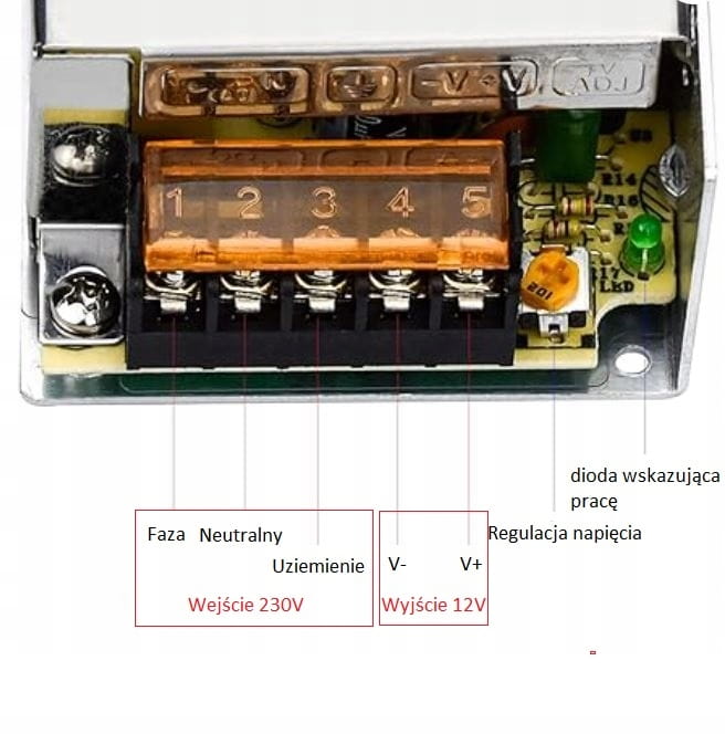 Zasilacz impulsowy przemysłowy LED 12V 60W 5A