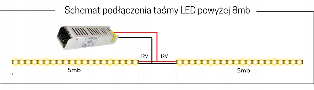 - Moc: 8W/m zalecna moc zasilacza min. 40W