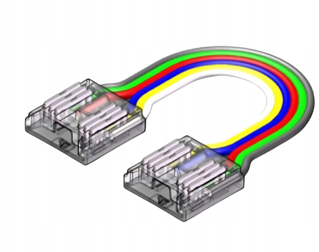 Złączka dwustronna z przewodem to niezbędny element dla każdego instalatora, który ceni sobie efektywność i prostotę montażu. Dzięki innowacyjnej konstrukcji umożliwia szybkie i trwałe połączenie taśmy LED (dwóch odcinków), bez konieczności lutowania. To idealne rozwiązanie dla taśm LED RGB+CCT o szerokości FPCB 12 mm .