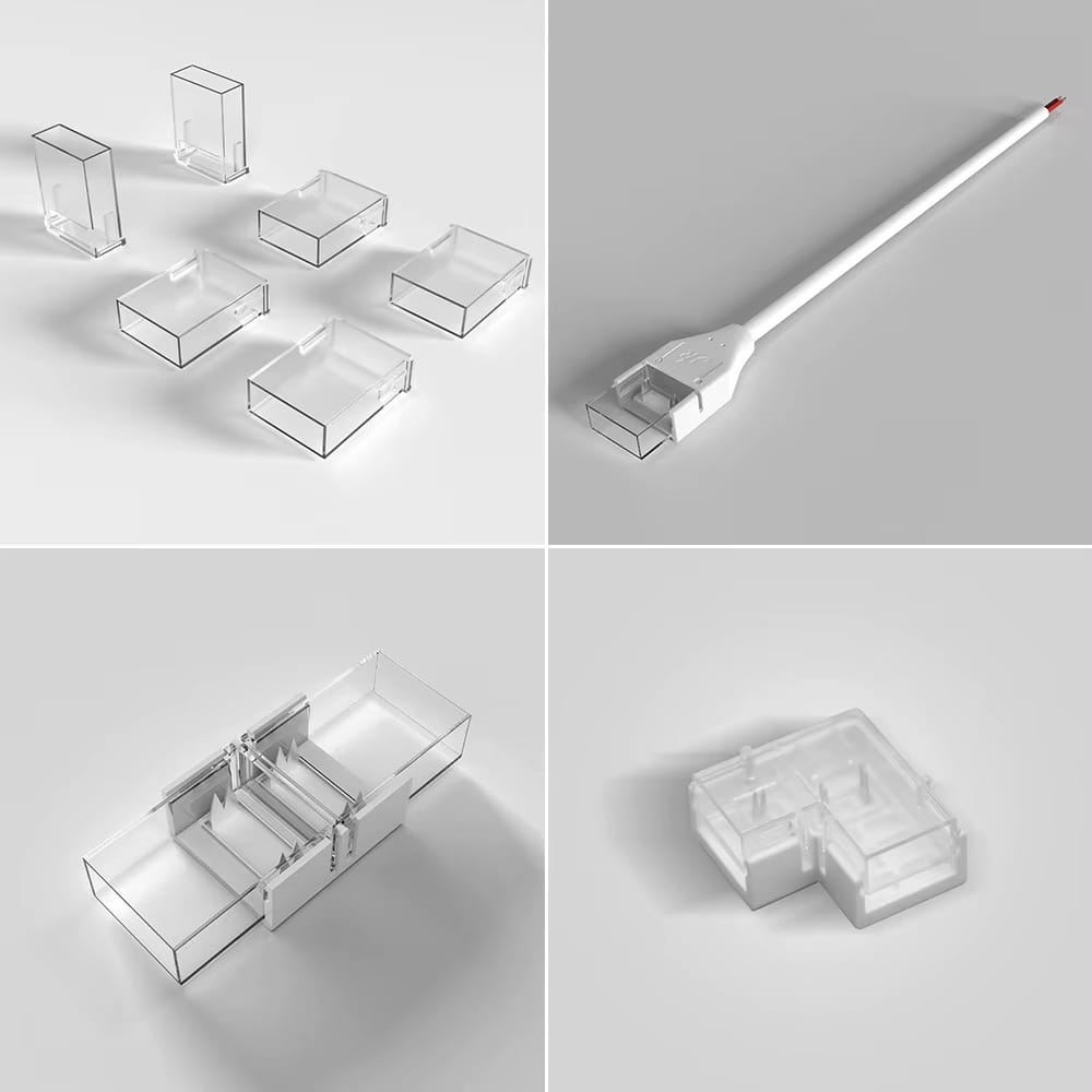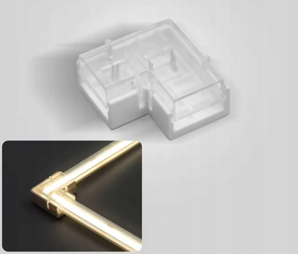 Przedmiotem aukcji jest wysokiej jakości złączka kątowa L 10mm do taśm LED COB i typu 2835 (240 led) IP67. W celu uzyskania wodoszczelności przezroczystą część złączki należy wypełnić klejem lub silikonem (brak w zestawie).