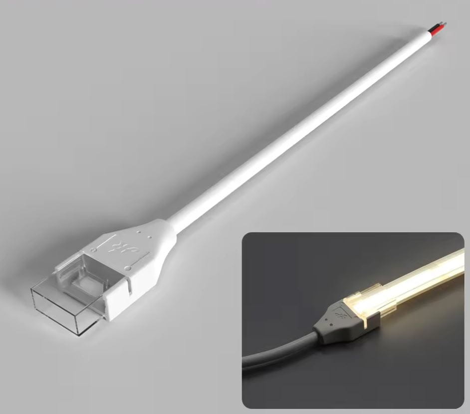 Przedmiotem aukcji jest wysokiej jakości złączka prosta jednostronna z kablem 10mm z otuliną (8mm podkład PCB) LED COB i typu 2835 (240 led) IP67. W celu uzyskania wodoszczelności przezroczystą część złączki należy wypełnić klejem lub silikonem (brak w zestawie).